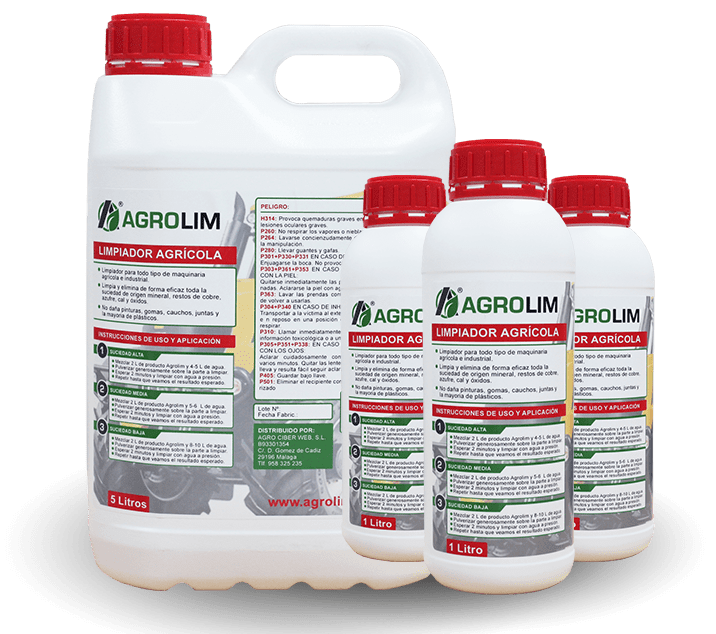 Agrolim es el mejor aliado de limpieza para tu maquinaria agrícola (tractores, remolques, cubas, atomizadores...) Agrolim elimina definitivamente restos de sulfatos y otros componentes minerales, y sin dañar ningún material ya que no contiene ácidos agresivos tales como el fluorhídrico, nítrico o clorhídrico.